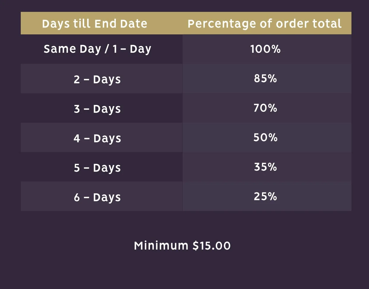 Click the link below to see how Rush Fees are calculated.